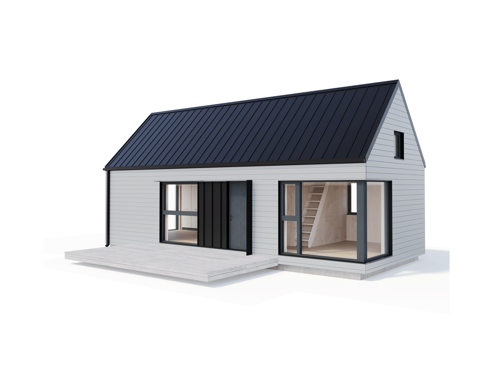 LIVING50 er vores største lille hus på 50 m² med ekstra hems på 4,4 m². Indretningen er enkel og planløsningen er åben med fantastisk kontakt til de naturlige omgivelser. Begynd konfigureringen herunder.